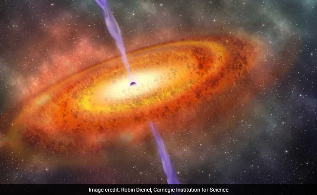 An artist's conception of the most distant supermassive black hole ever discovered.