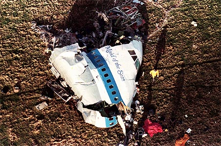 Pan Am Flight 103, bound from London's Heathrow Airport to New York, exploded over Scotland on December 21, 1988. All 259 people aboard - mainly Americans - and 11 people on the ground were killed when the airliner crashed into the town of Lockerbie.