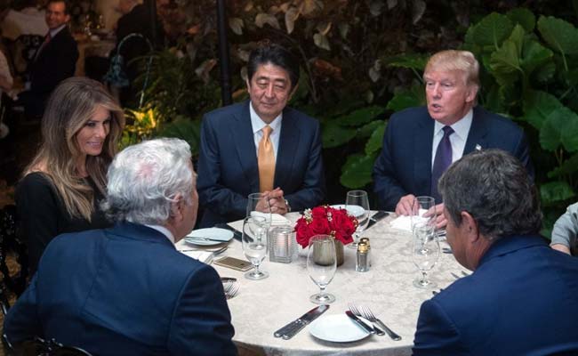 Inside the club, Trump and Abe entered the dining terrace to a standing ovation, club members told The Washington Post. The two leaders and their wives sat down on the noisy terrace, among other diners.