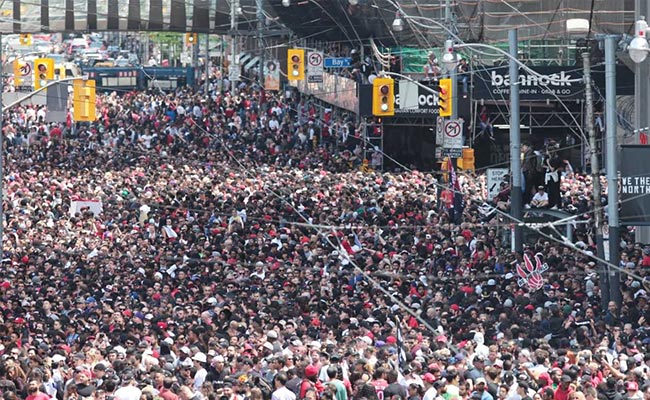 Toronto fans in front of city hall during Toronto Raptors NBA Championship celebration parade. (Reuters)