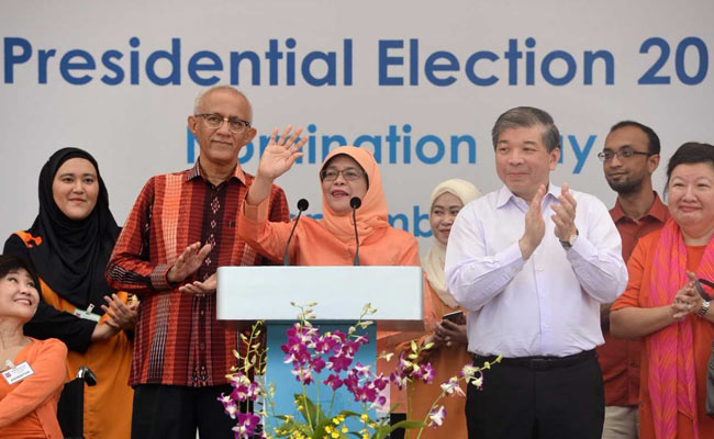 Halimah Yacob, a former speaker of parliament from the Muslim Malay minority, did not have to face an election for the largely ceremonial post originally due this month after authorities decided her rivals did not meet strict eligibility criteria.
