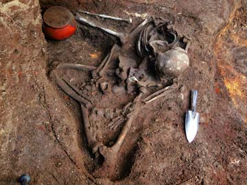 Handout picture provided by the Culture Secretariat of El Salvador showing the burial site where 1600-year-old human remains were discovered by Salvadorean and Japanese archaeologists, in the town of Nueva Esperanza, 90 km east of San Salvador, on April 1