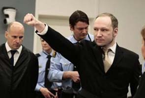 Wearing a suit and loose tie, Breivik entered the court in handcuffs, which were taken off just before he was seated. He smirked several times as the cuffs were removed, put his right fist on his heart then extended his hand in salute.