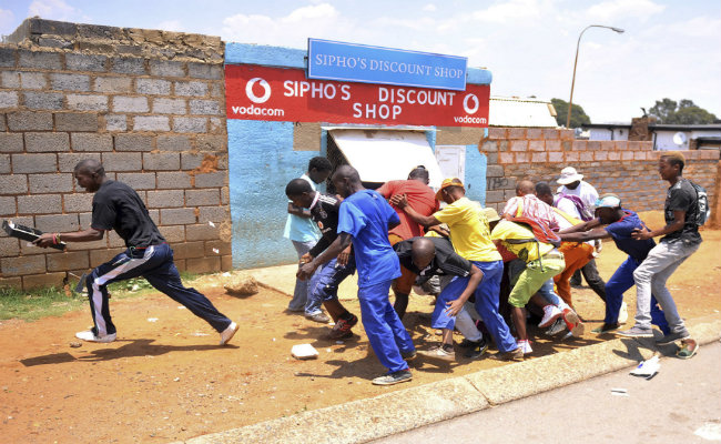 Looters make off with goods from a store in Soweto, South Africa. (Associated Press)