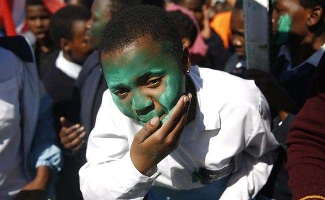 A protester covers her face with green powder in remembrance of one of the leaders of the Marikana mineworkers, during a march to commemorate the second anniversary of the killing of Marikana mineworkers on August 16, 2014. (Reuters)