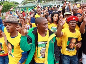 African National Congress ( ANC) supporters celebrate the victory of the ANC at the Peoples Park at the Moses Mabhida Football stadium in Durban on May 10, 2014