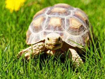 The African Sulcata tortoises will roam around grass on the museum's roof deck garden. Each will have two iPads showing video of three area ghost towns, which the museum says were filmed by the animals.