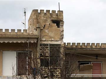 The collapsed wall of a house after an earthquake in Lixouri town on the island of Kefalonia, western Greece, Monday, Jan. 27, 2014.