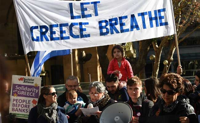 File Photo: Greeks and their supporters gather holding banners in support of their countrymen in Sydney on July 4, 2015, a day before nearly 10 million Greek voters take to the ballot booths to vote 'Yes' or 'No'. (AFP Photo)