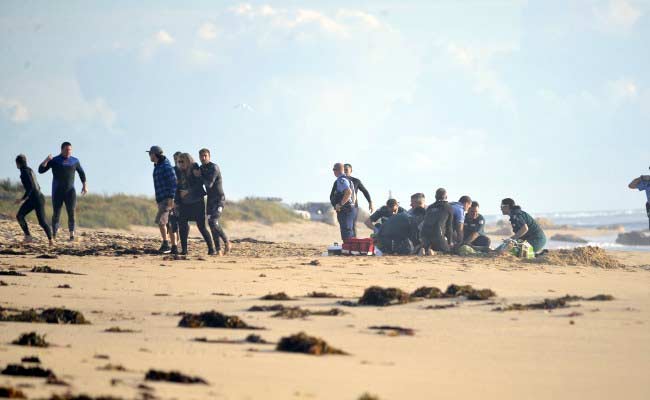 Ambulance and police officers helping a critically injured surfer after a shark ripped off his leg, who later lost his life. (File Photo)