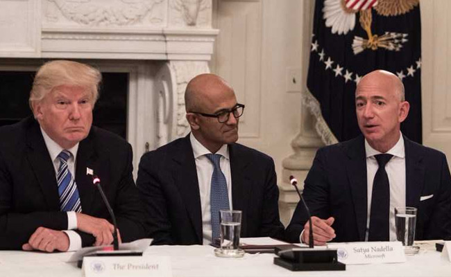 The president said he had heard complaints from "companies like Microsoft, Oracle and IBM," each of which were initial bidders along with Amazon.
