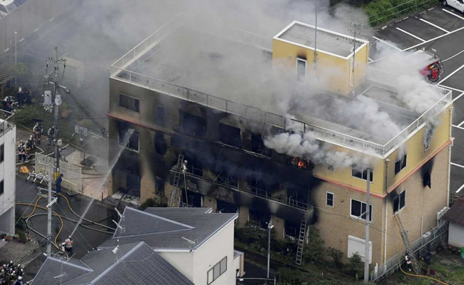 Jun Shin, a 30-year-old Chinese man living in nearby Osaka, visited the site on Thursday night to place flowers near the burnt-out office and say a prayer.