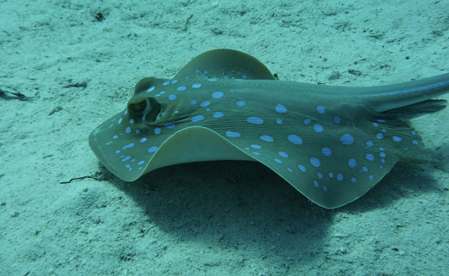 Commonly found in tropical waters, stingrays are a flattish, diamond-shaped fish that rarely attack humans.