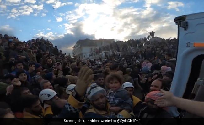 "A true miracle...the sounds of joy embrace the sky... joy beyond belief. An entire family was rescued from under the rubble of their house this afternoon, Tuesday, February 7, in the village of Bisnia, west of #Idlib. #Syria #earthquake," the White Helmets tweeted.