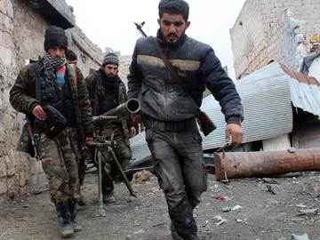 (FILES) - A file picture taken on January 27, 2014, shows Opposition fighters carrying a rocket launcher during clashes against government forces in the Sheikh Lutfi area, west of the airport in the northern Syrian city of Aleppo.