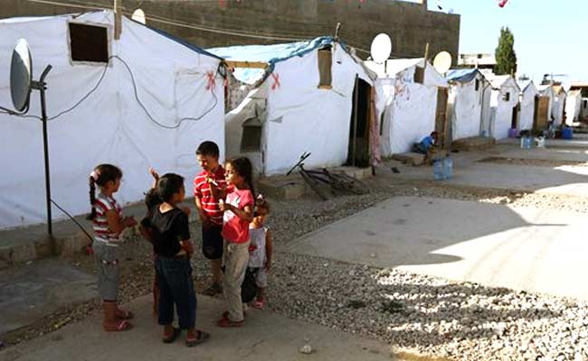 File Photo: Syrian refugee children play outside their tent in a refugee camp in the eastern town of Marj in Lebanon. (AP Photo)