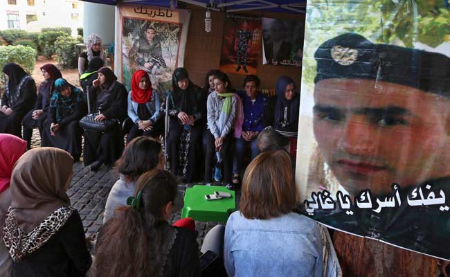 Families of missing soldiers who were kidnapped by militants from the ISIS and al-Qaida's affiliate in Syria, the Nusra Front protest in downtown Beirut, Lebanon on November 29, 2015. (AP)