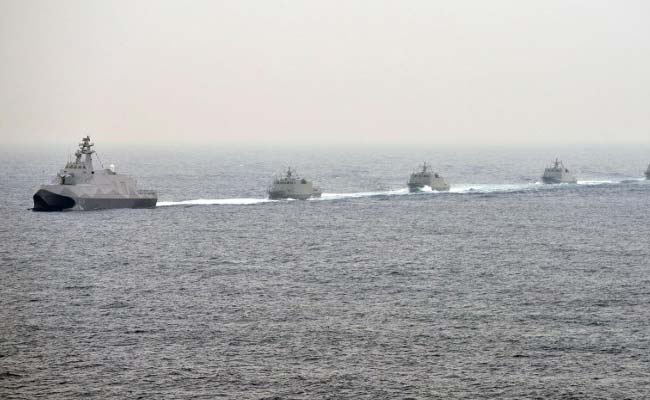 Navel vessels follow a domestic constructed guided missile corvette during a drill at sea near the naval port in Kaohsiung. (AFP Photo)