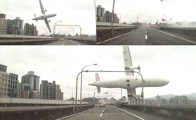 TransAsia flight ATR 72-600 crashed shortly after take-off from Songshan airport in northern Taipei (Photo credit: Taiwan CTITV)