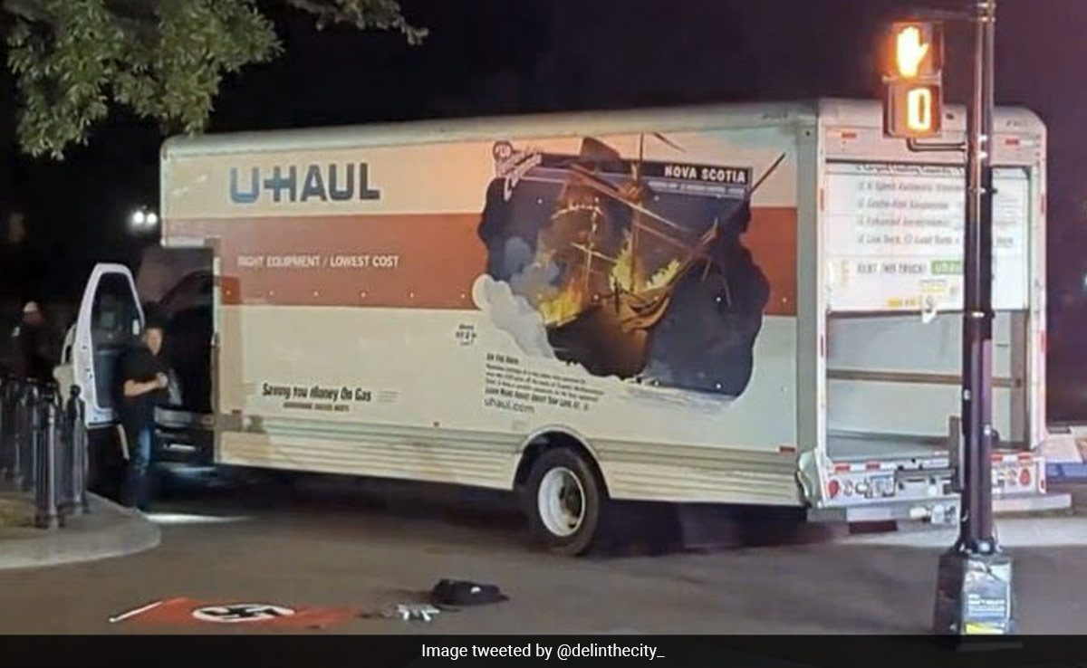 TV images showed a red and black swastika banner that had been found during a police search of the truck.