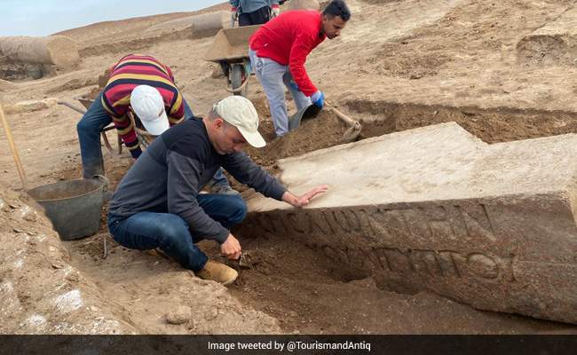 The ministry shared some pictures on Twitter and said: "The Egyptian archaeological mission working at the site of Tell Al-Farma in the North Sinai archaeological area succeeded in uncovering the remains of a temple to the god Zeus Cassius; within the Sinai excavation project for the year 2021-2022."