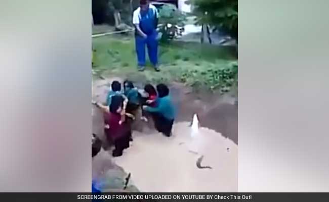 In the three-minute video, nine girls waded through a mud pit, seemingly having fun at first. They clearly hadn't noticed what lurked beneath the murky water.