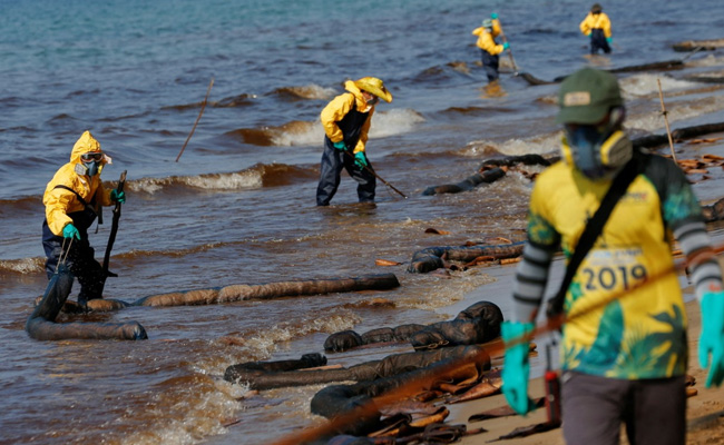 About 150 SPRC workers and 200 navy personnel had been deployed to clean up the beach and oil boom barriers had been set up, the navy said.