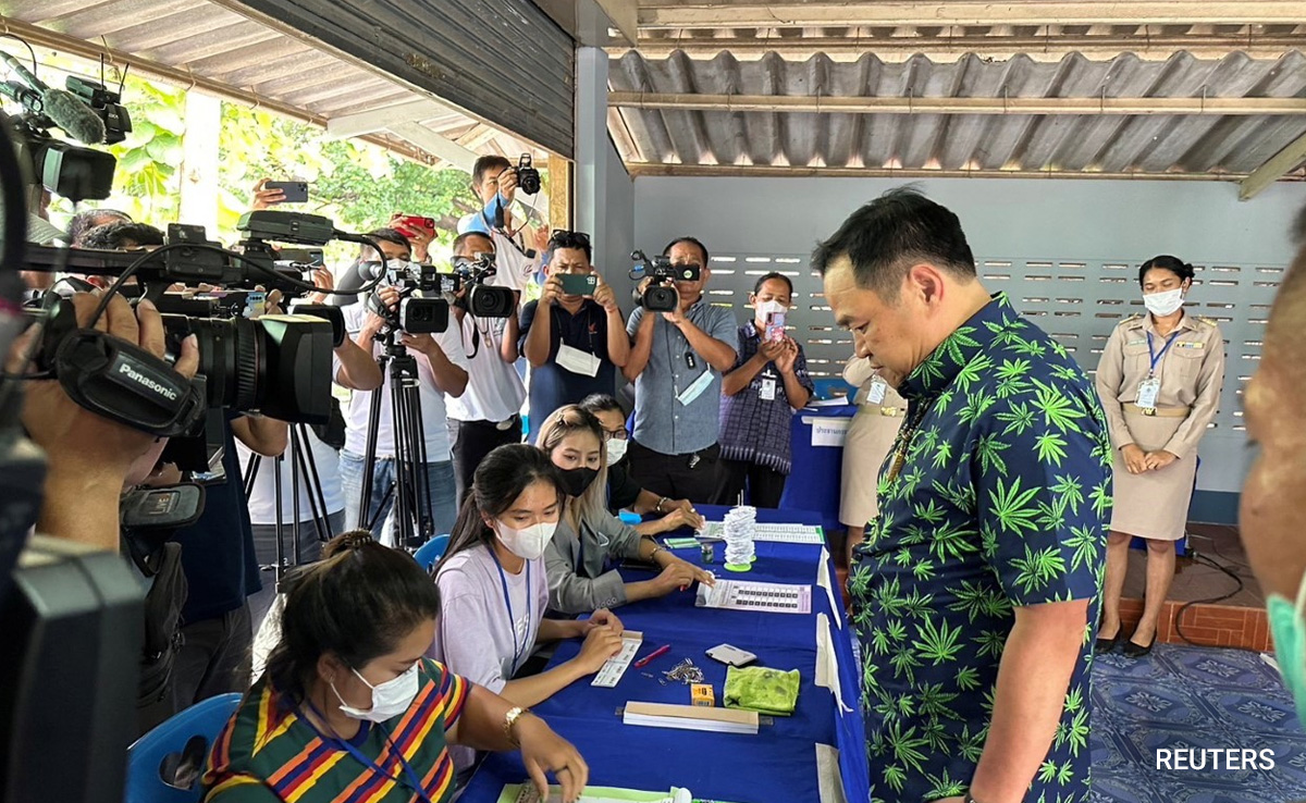 Thailand's health minister and cannabis advocate Anutin Charnvirakul turned heads during Sunday's election as he arrived to cast his vote at a polling station wearing a dark shirt with bright green marijuana leaves.