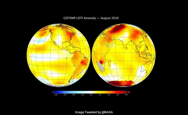August 2016 was the hottest month in 136 years of modern record-keeping, according to a monthly analysis of global temperatures by NASA scientists.