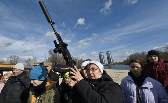 But he joined scores of others and picked up a Kalashnikov when boxes of them were dumped from trucks and handed out to Ukraine's new volunteer defence units on day two of Russia's invasion.