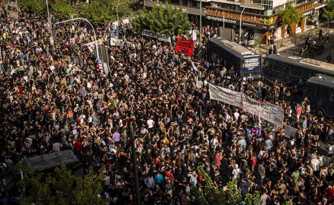 On Tuesday, lawmakers of the main opposition leftist Syriza party held up letters in parliament that spelled "they are not innocent".
