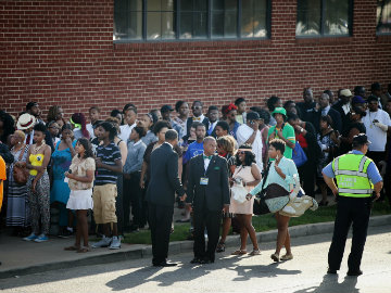 Large lines formed outside the Friendly Temple Missionary Baptist Church, as hundreds of people began filling the pews of the 5,000-seat church.