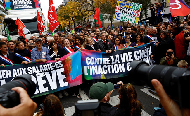 The leader of hard-left party La France Insoumise (France Unbowed), Jean-Luc Melenchon, marched alongside this year's Nobel Prize winner for Literature, Annie Ernaux. He called a general strike for Tuesday.