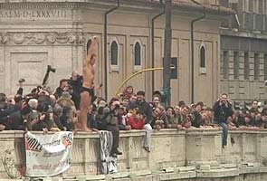 The stunt is regarded as dangerous, as the waters of the Tiber are cold and muddy and the river is not really deep enough for a dive from such a height.