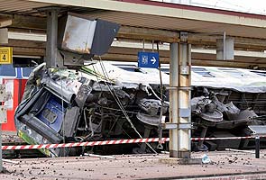 "The train arrived at the station at high speed. It split in two for an unknown reason. Part of the train continued to roll while the other was left on its side on the platform," a police source told AFP.