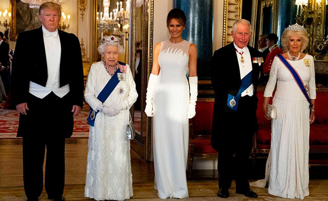 Ivanka Trump, who is also an adviser to the president, chose a prim aesthetic for her stay in England. Her clothes oozed classic femininity, with the pleated skirts and the full-skirted pale blue Carolina Herrera gown she wore to Buckingham Palace.