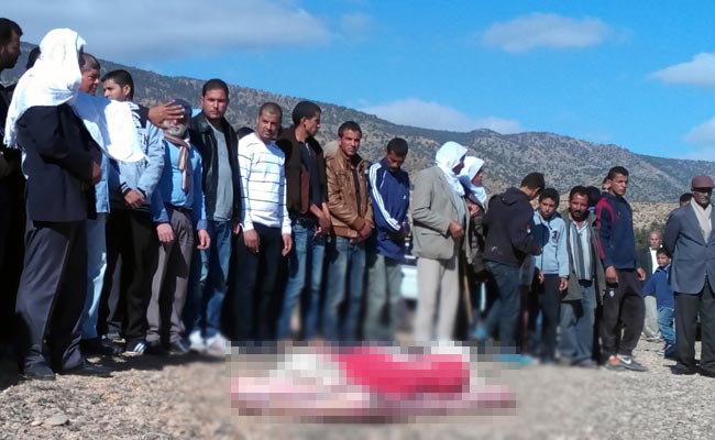 Tunisians pray before the burial of shepherd, Mabrouk Soltani, who was slaughtered and beheaded by jihadists on November 13, 2015 during his funeral in Jelma, a town in Tunisia's central governorate of Sidi Bouzid on November 15.(AFP))