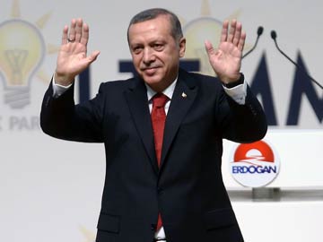 Turkish Prime Minister Recep Tayyip Erdogan gestures during a ceremony in front of members of Turkey's ruling Justice and Development Party (AKP) after announcing that he will stand in August's presidential elections on July 1, 2014 in Ankara.