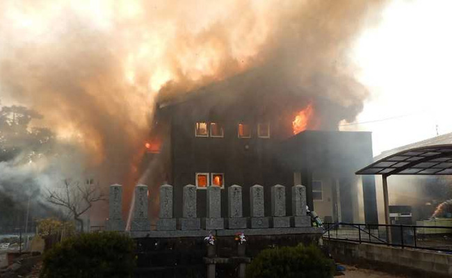 Japan's NHK television showed a thick plume of grey smoke rising from the site of the crash in between the rooftops of local houses.