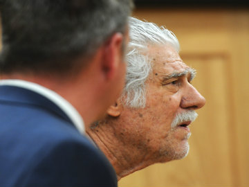 Wayne Burgarello, with his public defender Justin Champagne, listens to the judge during his bail hearing in Sparks Justice Court. Bail was set at $2 million for the 73-year-old former school teacher for killing 2 unarmed trespassers.