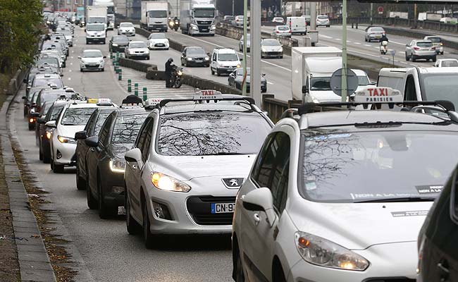 Striking Paris Taxis take part in a demonstration over the Paris ring road on December 15, 2014. (Reuters)