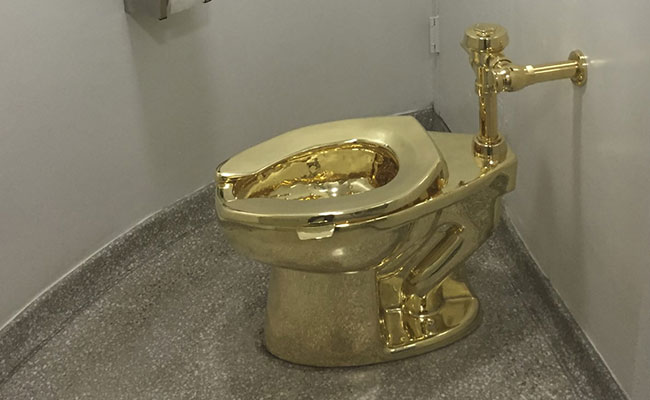 The 18-carat gold toilet, titled America, was displayed in an exhibition by Maurizio Cattelan, an Italian conceptual artist.