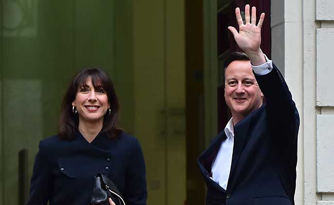 British Prime Minister David Cameron (R) and his wife Samantha arrive at Conservative Party headquarters in London on May 8, 2015. (AFP)