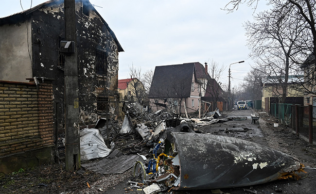 Wreckage of an aircraft which crashed into a private house in Kyiv on Friday (AFP photo)