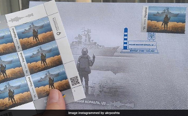 Available from Kyiv's central post office, the stamps show a Ukrainian soldier giving the finger to Moskva. The now viral phrase has been used on the sides of the stamps.