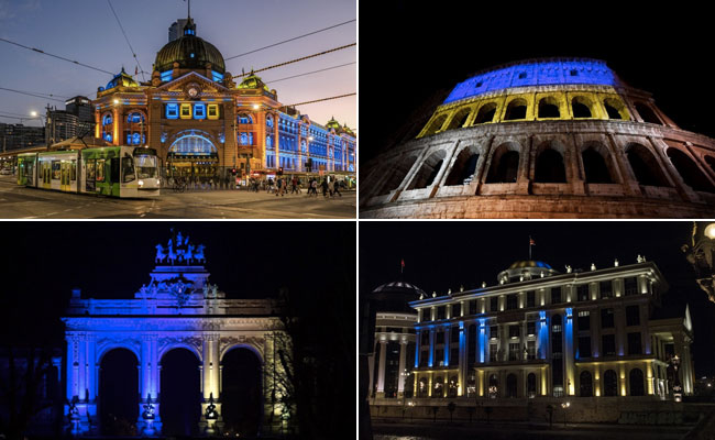 Buildings around the world are lit up with the colours of the Ukrainian flag to show solidarity following the Russian invasion of Ukraine.