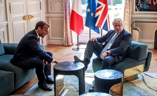 British Prime Minister Boris Johnson may have taken a month to embark on his first trip abroad, but he was quick to make himself at home in President Emmanuel Macron's gilded palace, putting his feet up on the furniture.