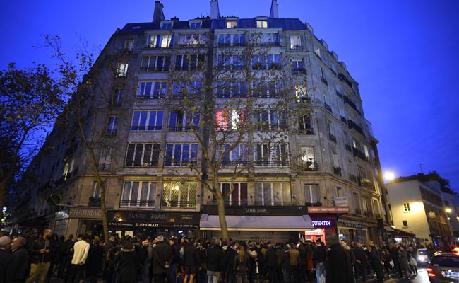 People gather to pay tribute to attack victims at the "Belle Equipe" restaurant, the site of one of the attacks in Paris on November 14, 2015. (Agence France-Presse)