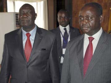 Michel Am-Nondokro Djotodia (L), leader of Central African Republic's (CAR) Seleka rebel alliance, stands beside former CAR president Francois Bozize (R) during peace talks with delegations representing the government and the opposition rebels in Librevil