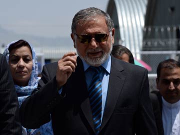 Head of the Afghan Independent Election Commission (IEC) Ahmad Yousuf Nuristani (C) arrives ahead of a press conference in Kabul on May 15, 2014.